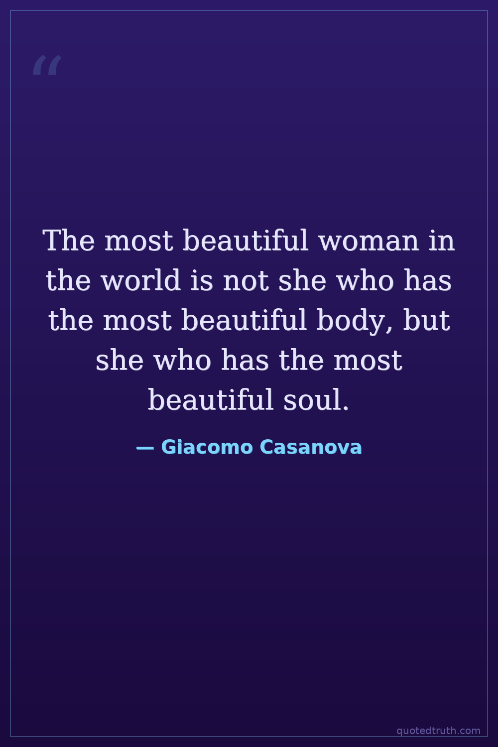 The most beautiful woman in the world is not she who has the most beautiful body, but she who has the most beautiful soul.