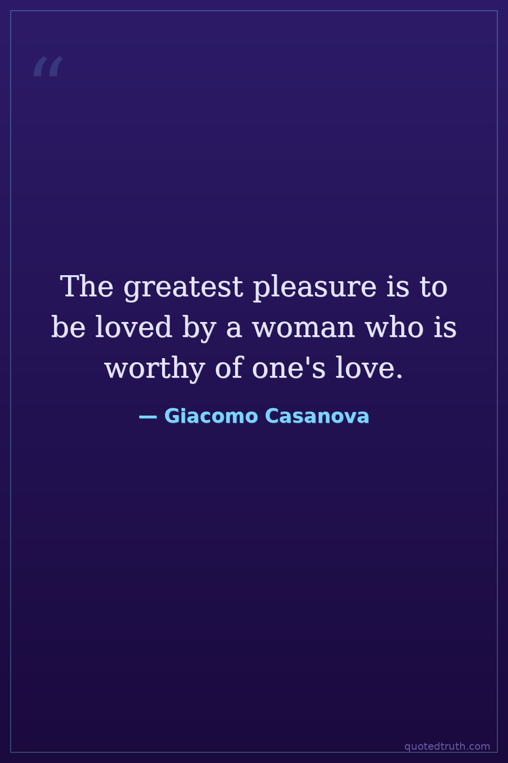 The greatest pleasure is to be loved by a woman who is worthy of one's love.