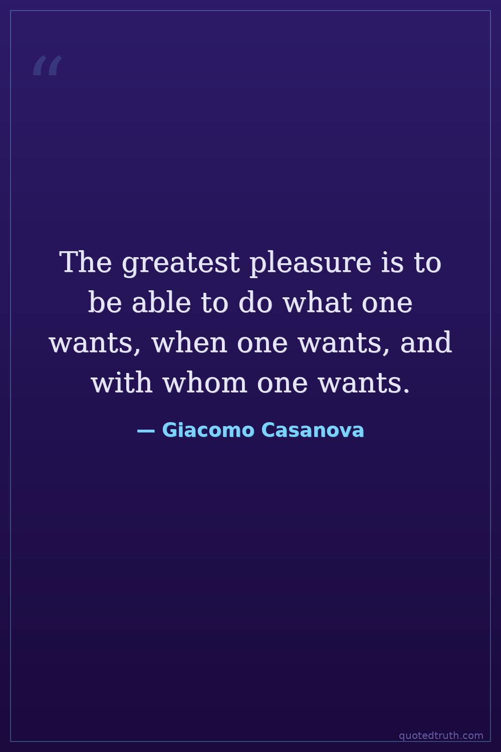The greatest pleasure is to be able to do what one wants, when one wants, and with whom one wants.