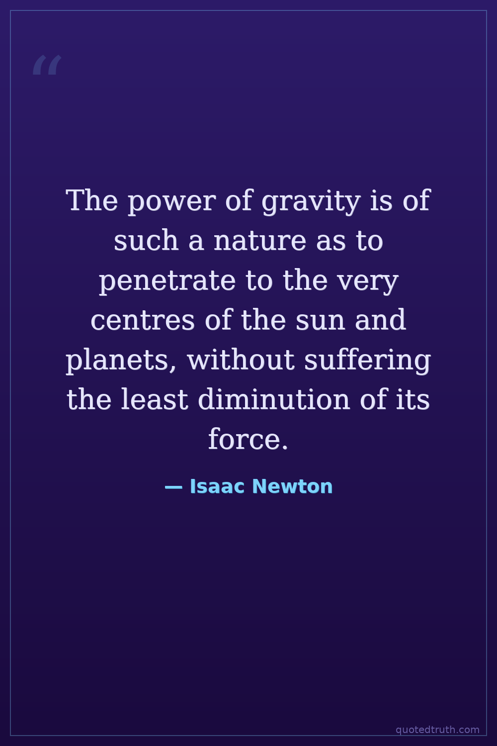 The power of gravity is of such a nature as to penetrate to the very centres of the sun and planets, without suffering the least diminution of its force.