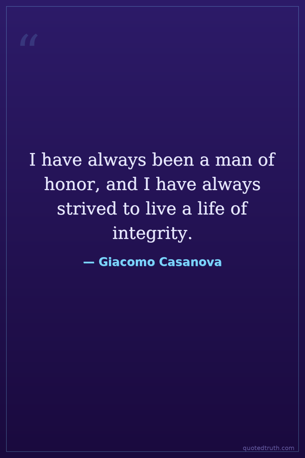 I have always been a man of honor, and I have always strived to live a life of integrity.