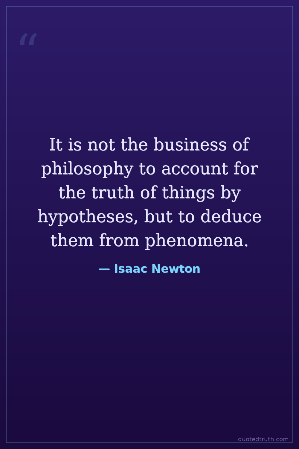 It is not the business of philosophy to account for the truth of things by hypotheses, but to deduce them from phenomena.