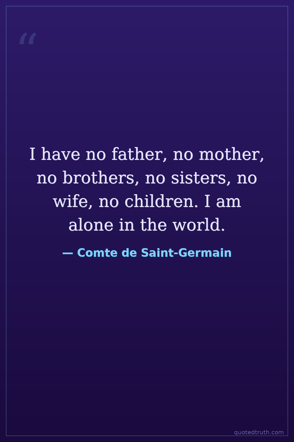 I have no father, no mother, no brothers, no sisters, no wife, no children. I am alone in the world.
