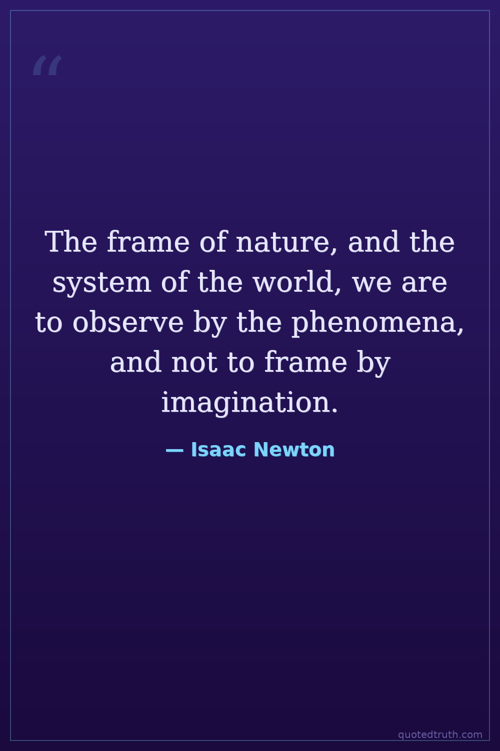 The frame of nature, and the system of the world, we are to observe by the phenomena, and not to frame by imagination.
