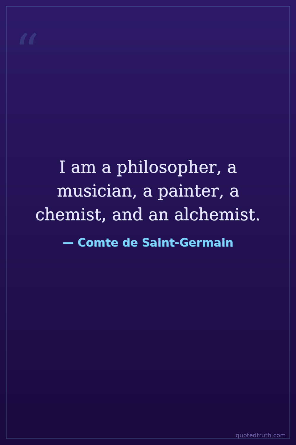 I am a philosopher, a musician, a painter, a chemist, and an alchemist.