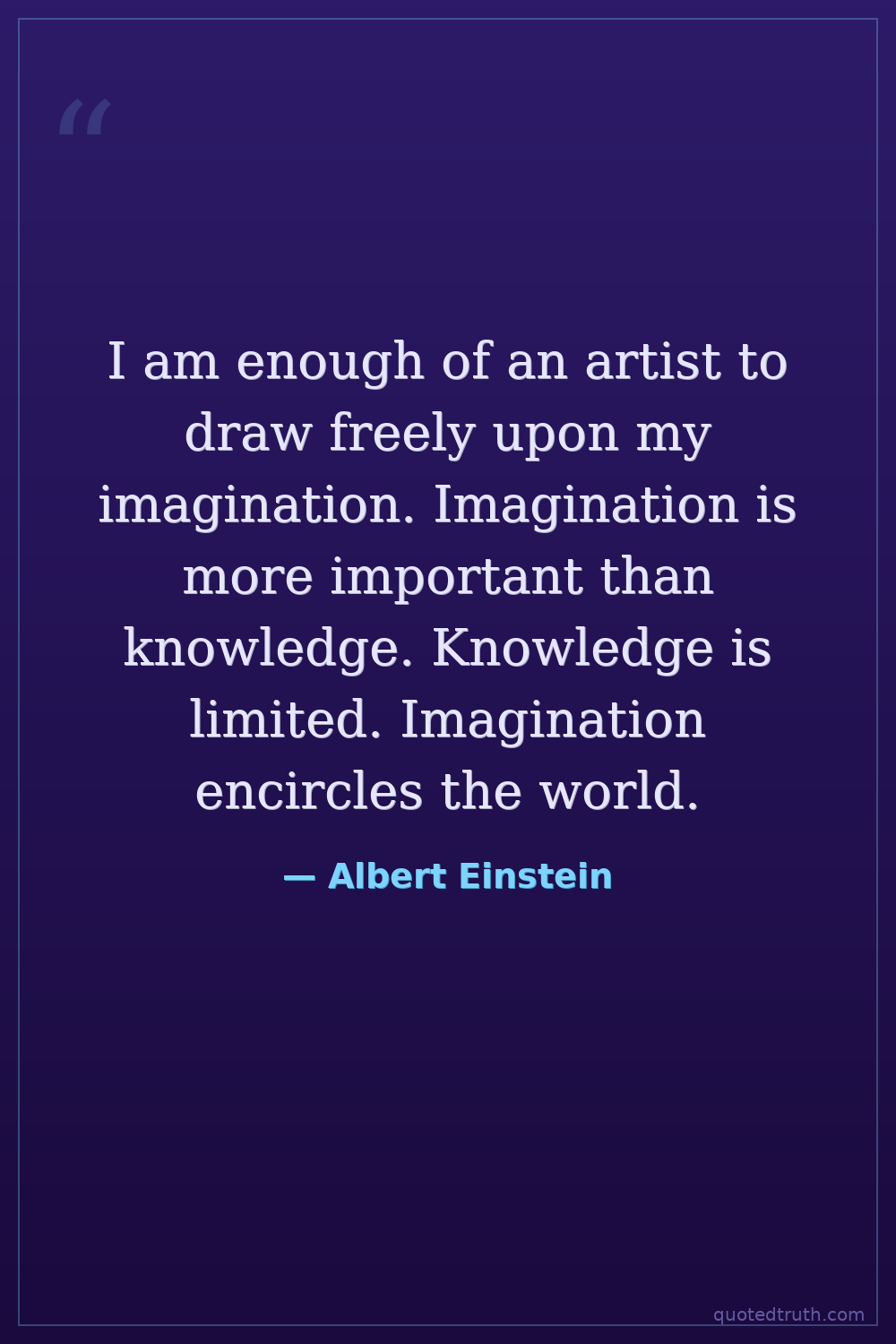 I am enough of an artist to draw freely upon my imagination. Imagination is more important than knowledge. Knowledge is limited. Imagination encircles the world.