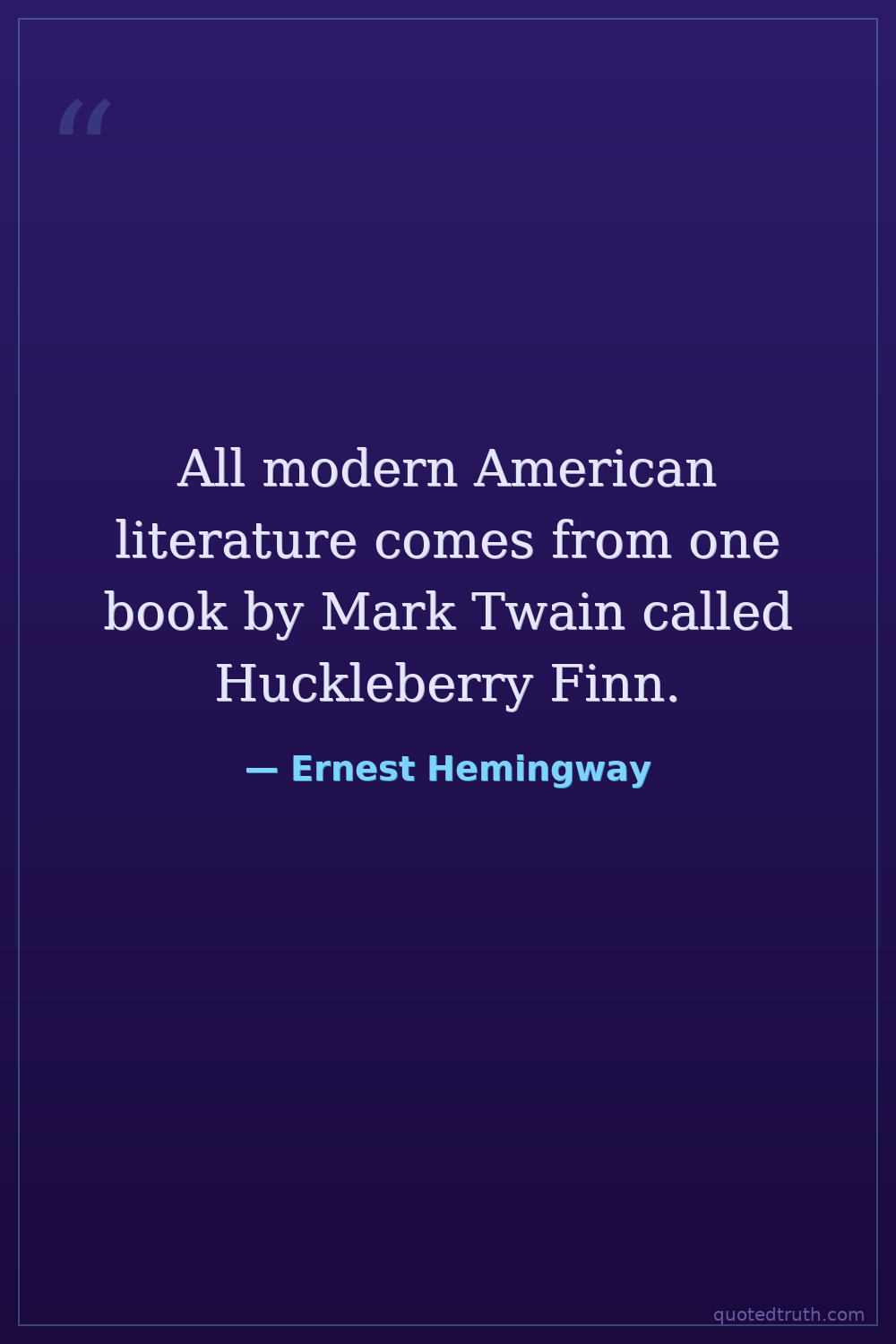 All modern American literature comes from one book by Mark Twain called Huckleberry Finn.