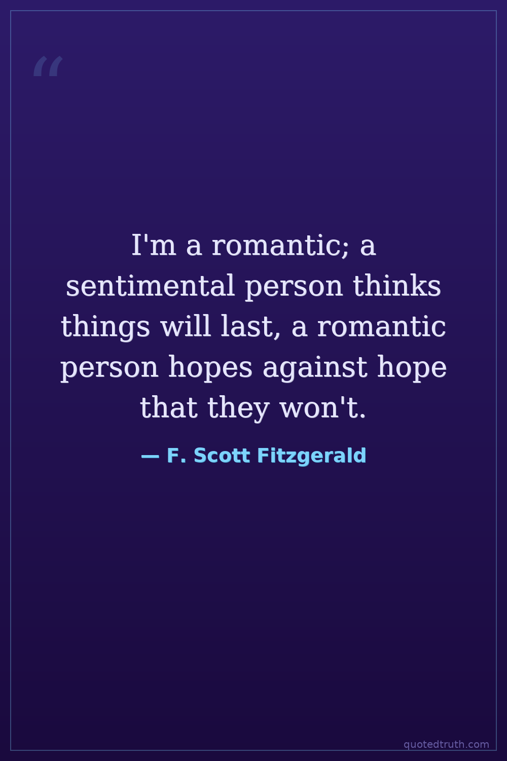 I'm a romantic; a sentimental person thinks things will last, a romantic person hopes against hope that they won't.