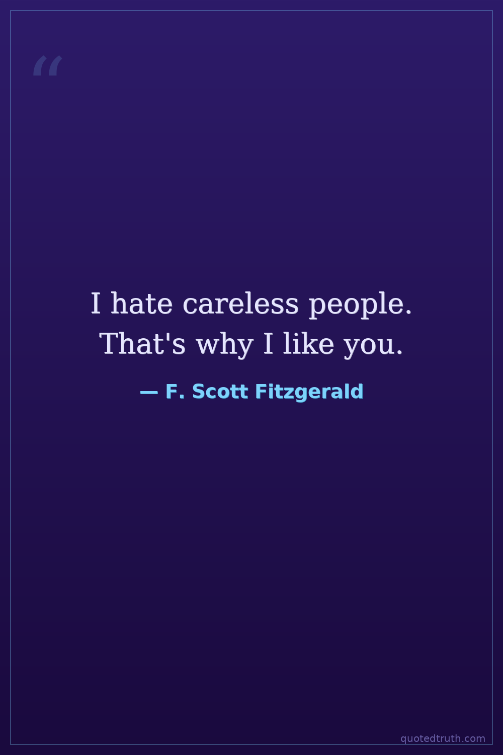 I hate careless people. That's why I like you.