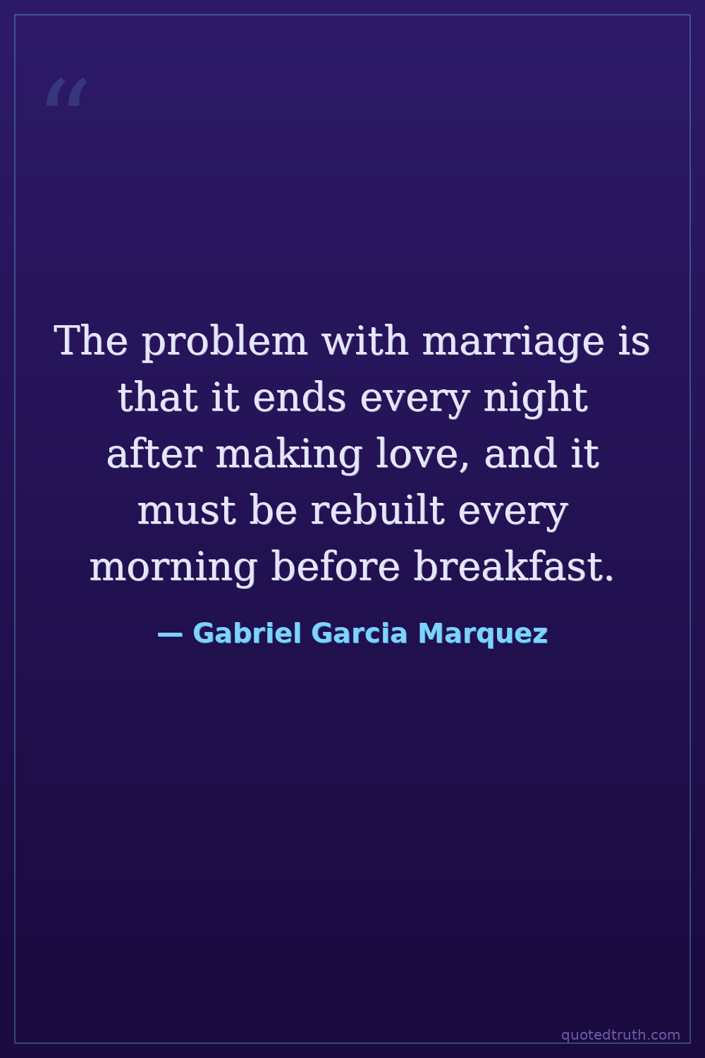 The problem with marriage is that it ends every night after making love, and it must be rebuilt every morning before breakfast.