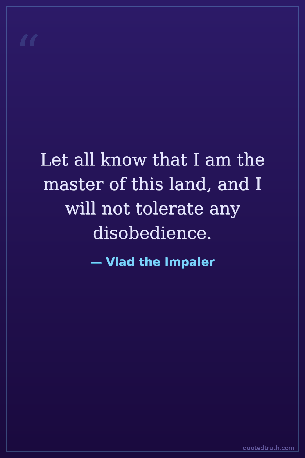 Let all know that I am the master of this land, and I will not tolerate any disobedience.