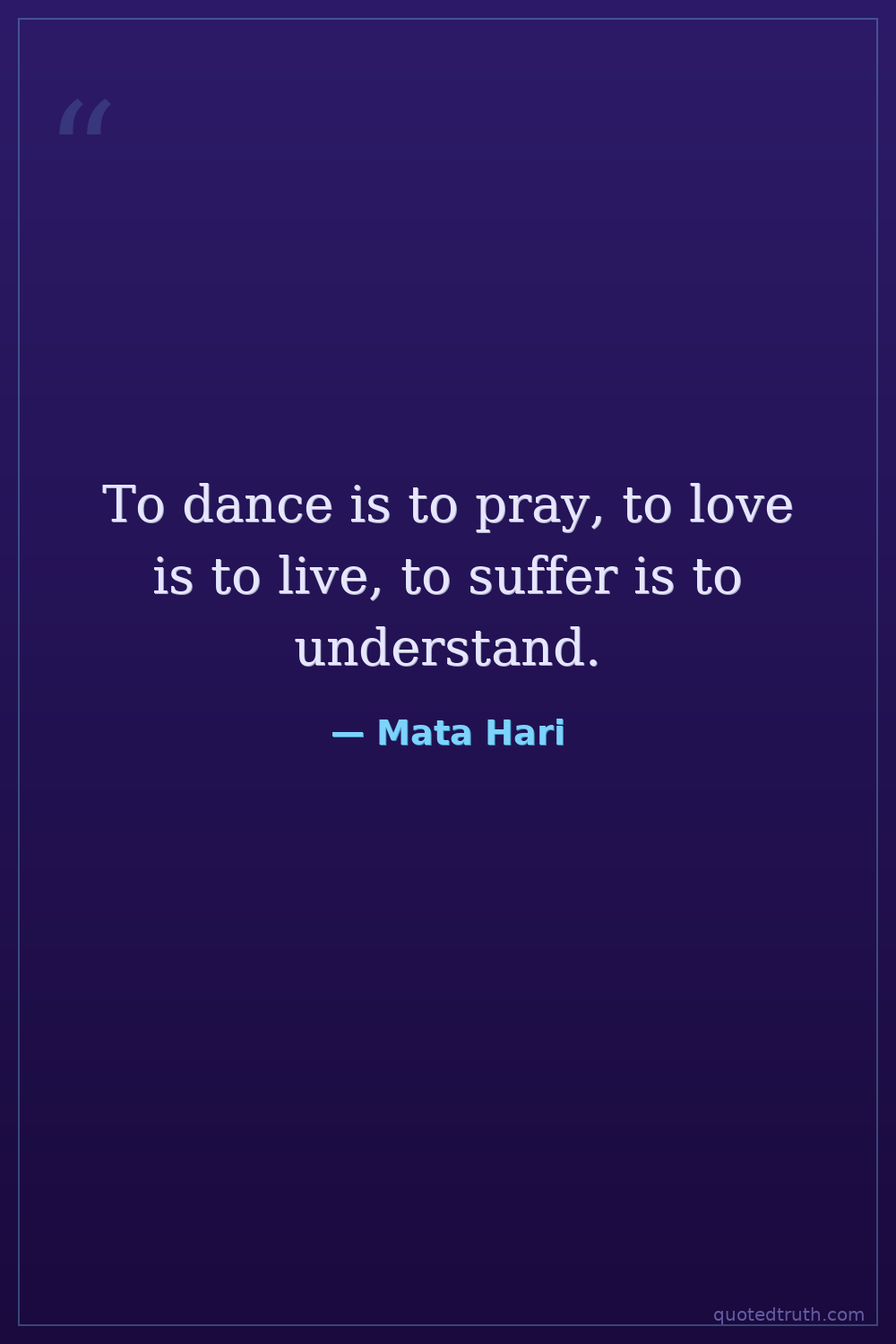 To dance is to pray, to love is to live, to suffer is to understand.