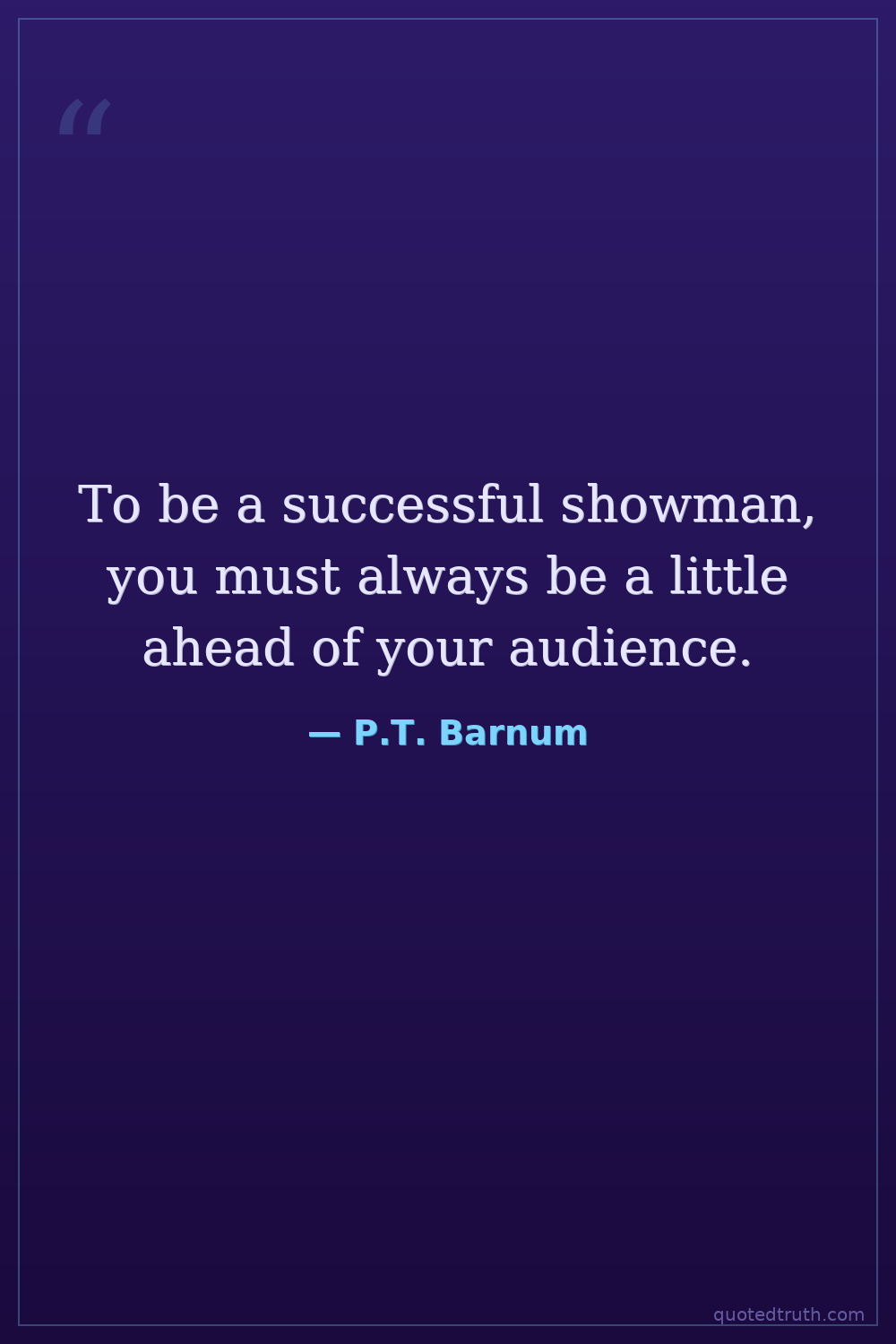 To be a successful showman, you must always be a little ahead of your audience.