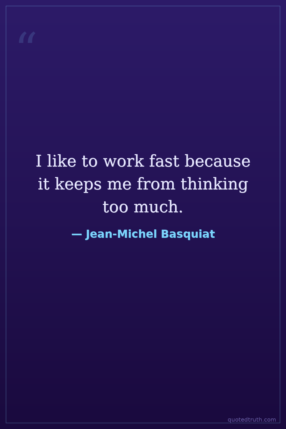 I like to work fast because it keeps me from thinking too much.