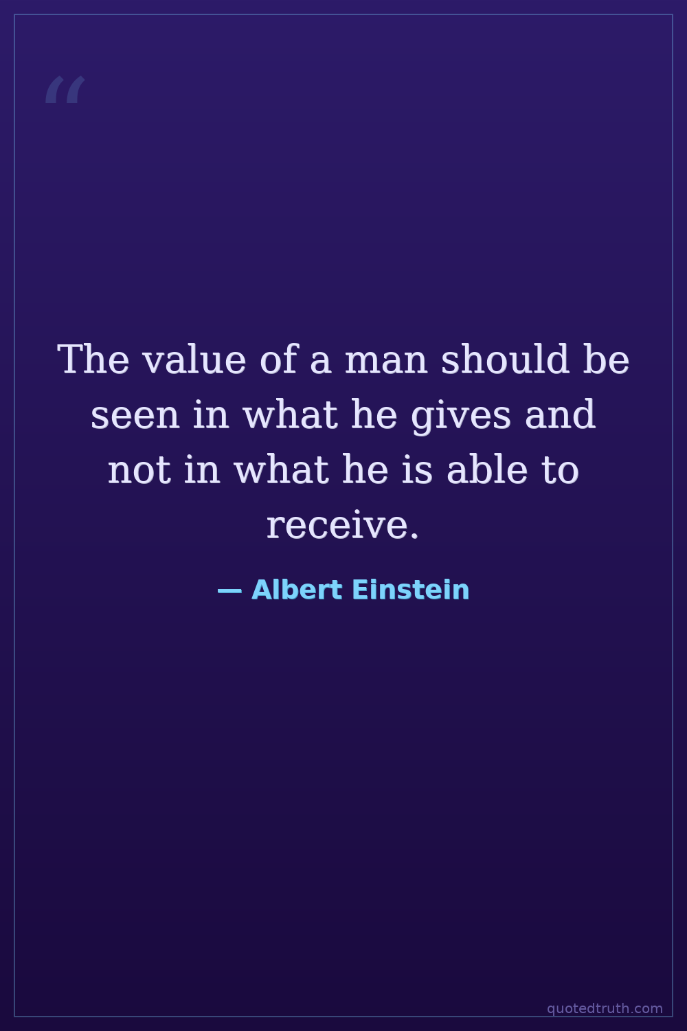 The value of a man should be seen in what he gives and not in what he is able to receive.