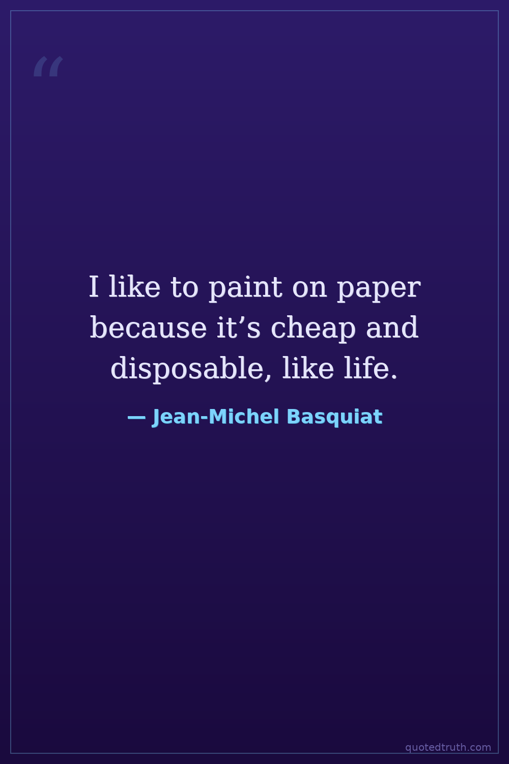 I like to paint on paper because it’s cheap and disposable, like life.