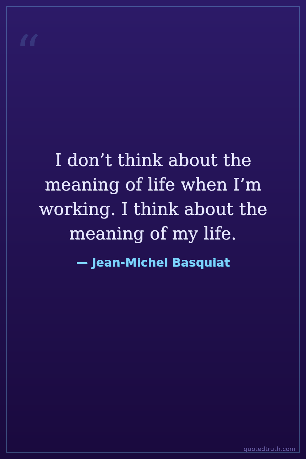 I don’t think about the meaning of life when I’m working. I think about the meaning of my life.