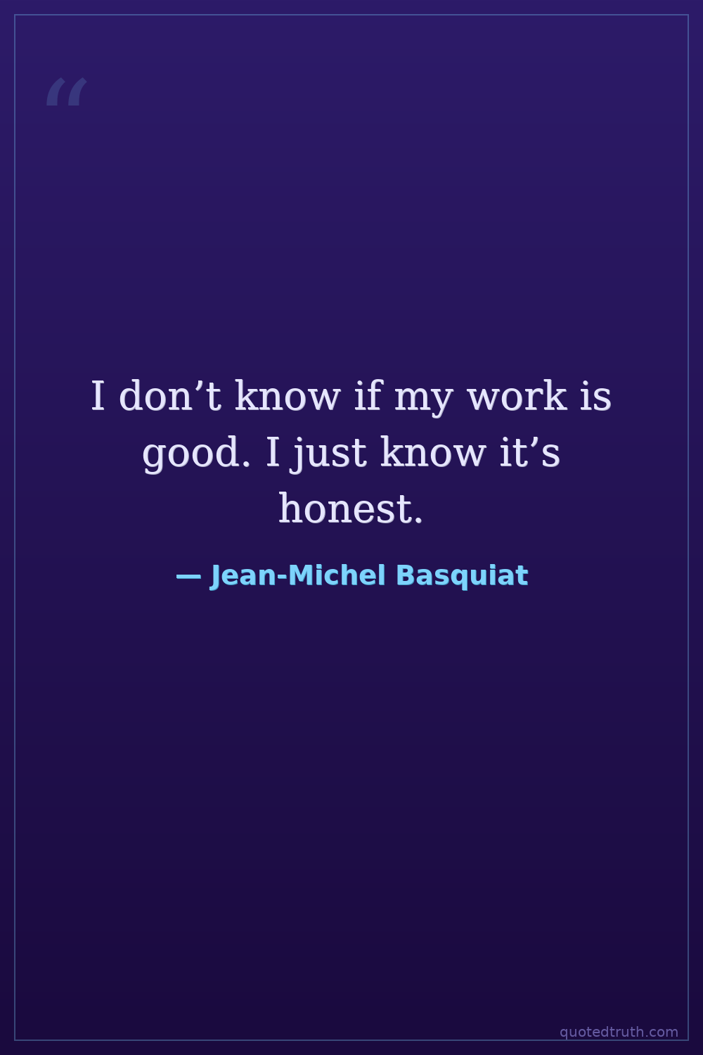 I don’t know if my work is good. I just know it’s honest.