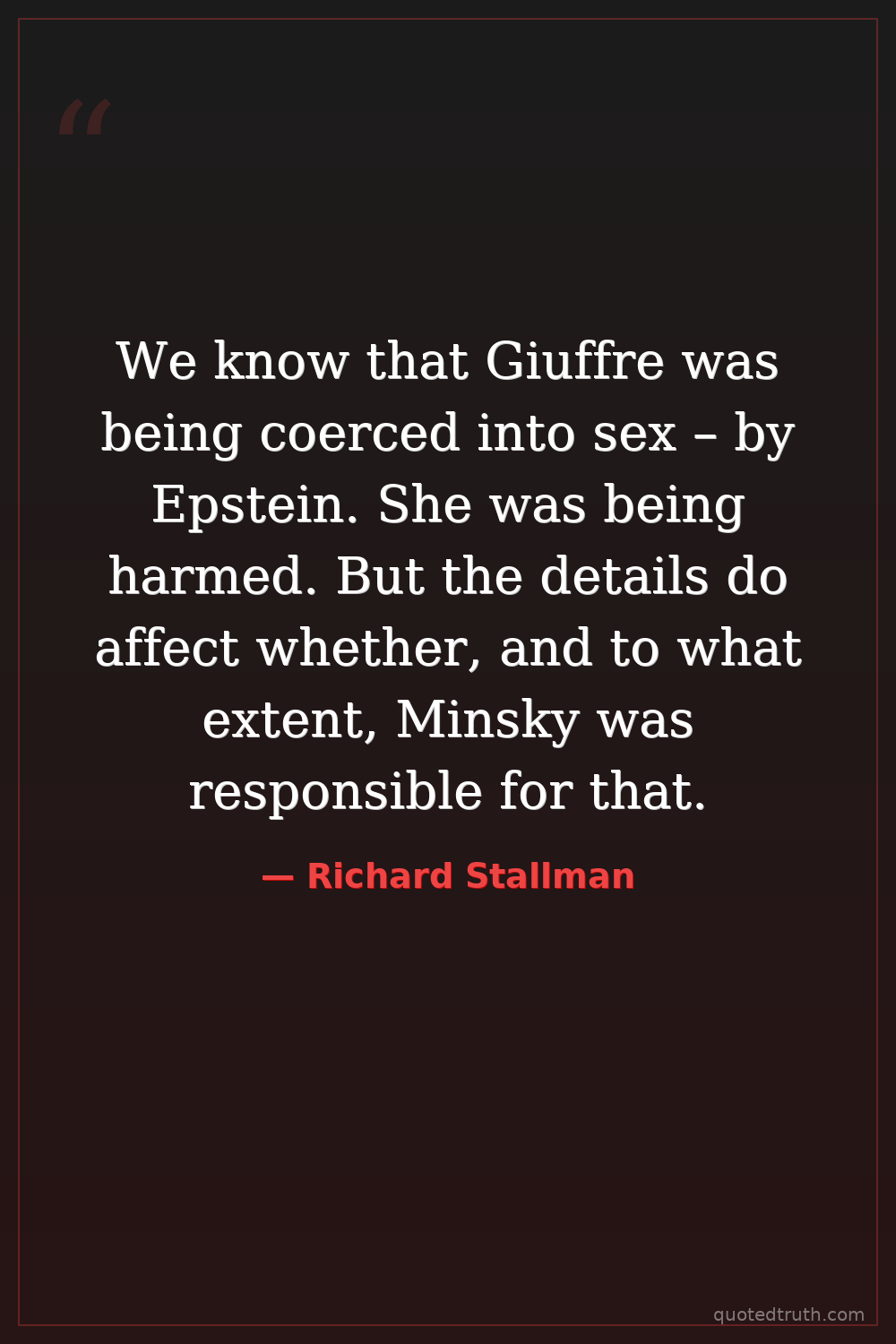 We know that Giuffre was being coerced into sex – by Epstein. She was being harmed. But the details do affect whether, and to what extent, Minsky was responsible for that.