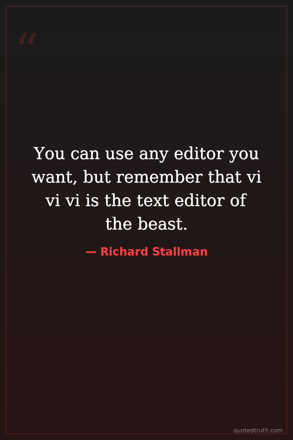 You can use any editor you want, but remember that vi vi vi is the text editor of the beast.