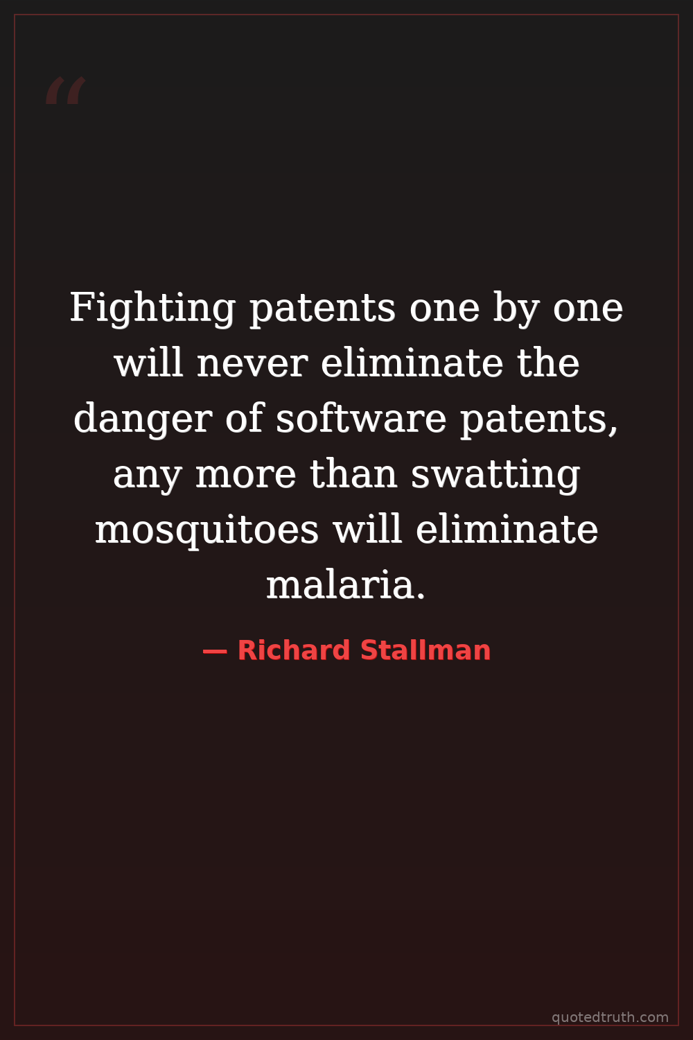 Fighting patents one by one will never eliminate the danger of software patents, any more than swatting mosquitoes will eliminate malaria.