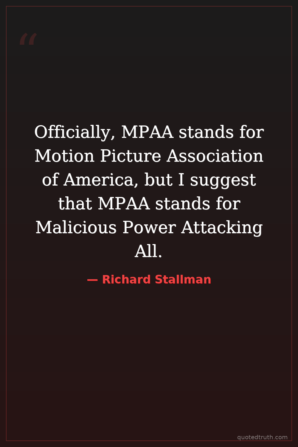 Officially, MPAA stands for Motion Picture Association of America, but I suggest that MPAA stands for Malicious Power Attacking All.