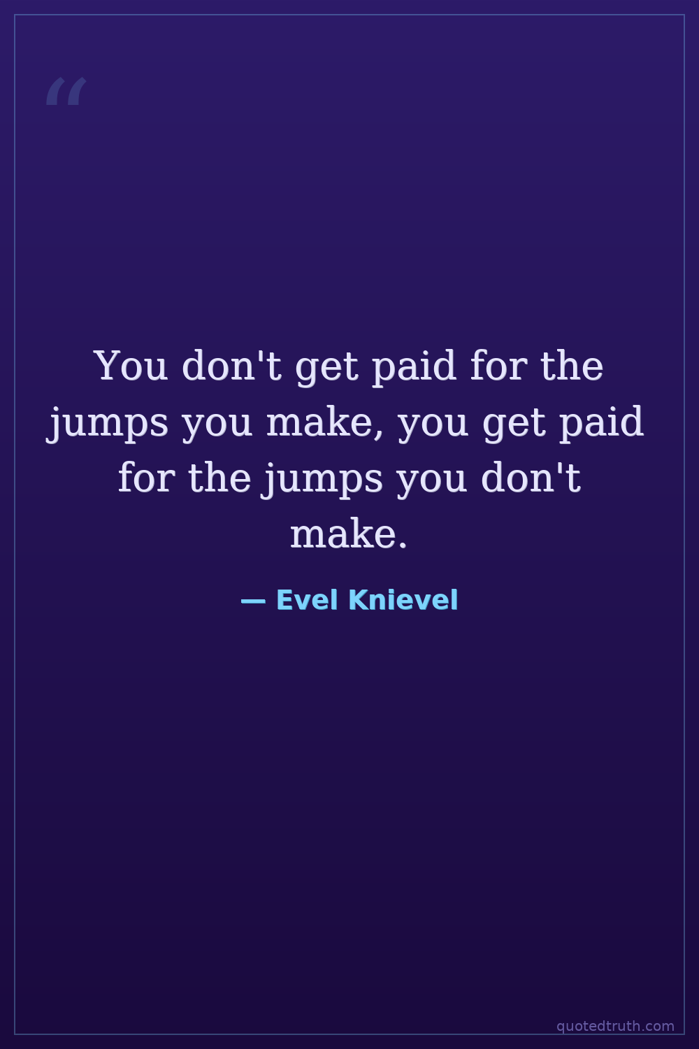You don't get paid for the jumps you make, you get paid for the jumps you don't make.