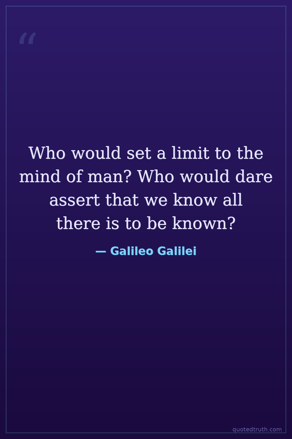 Who would set a limit to the mind of man? Who would dare assert that we know all there is to be known?