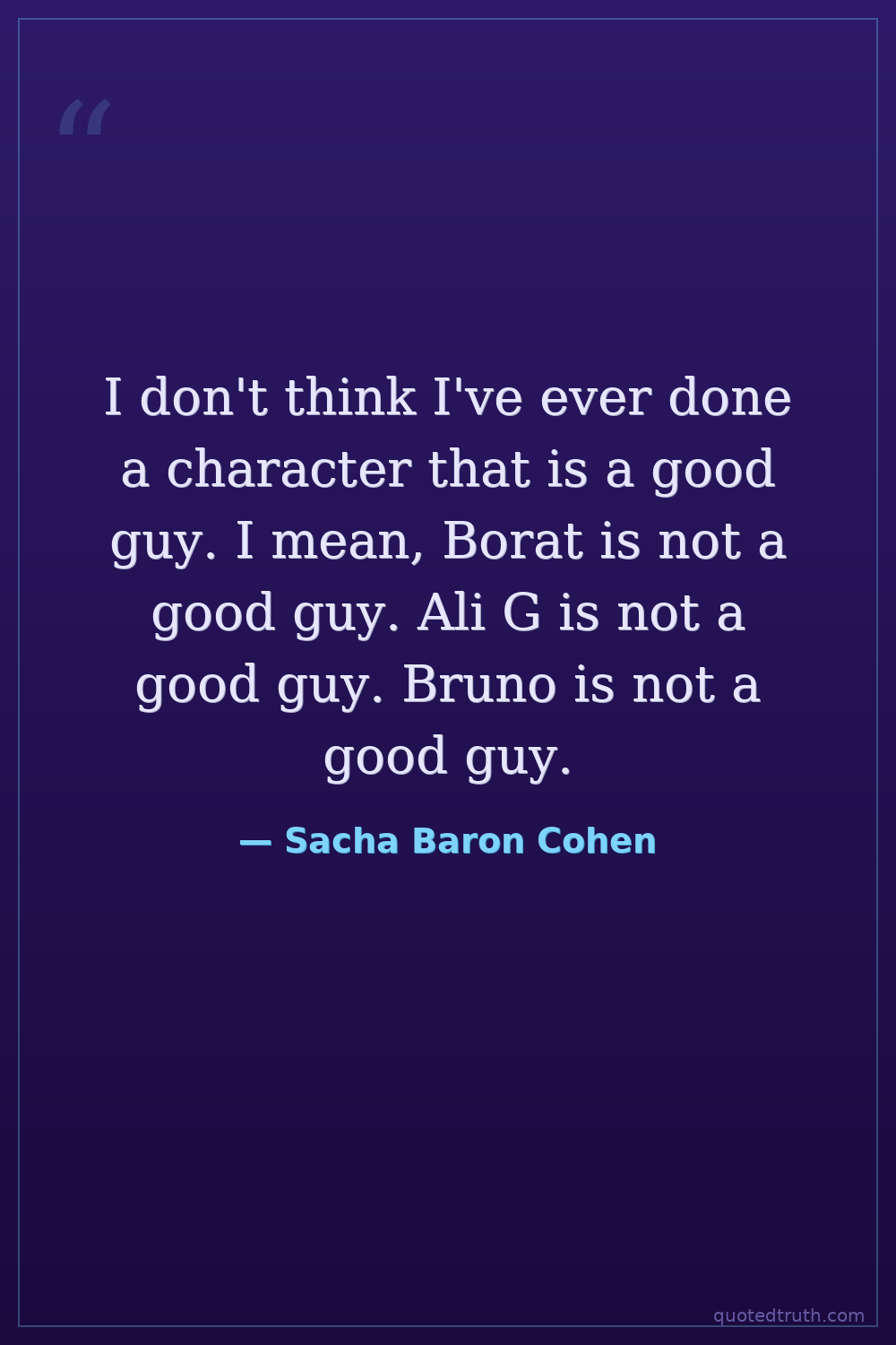 I don't think I've ever done a character that is a good guy. I mean, Borat is not a good guy. Ali G is not a good guy. Bruno is not a good guy.