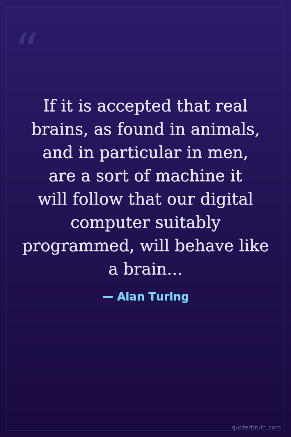If it is accepted that real brains, as found in animals, and in particular in men, are a sort of machine it will follow that our digital computer suitably programmed, will behave like a brain...