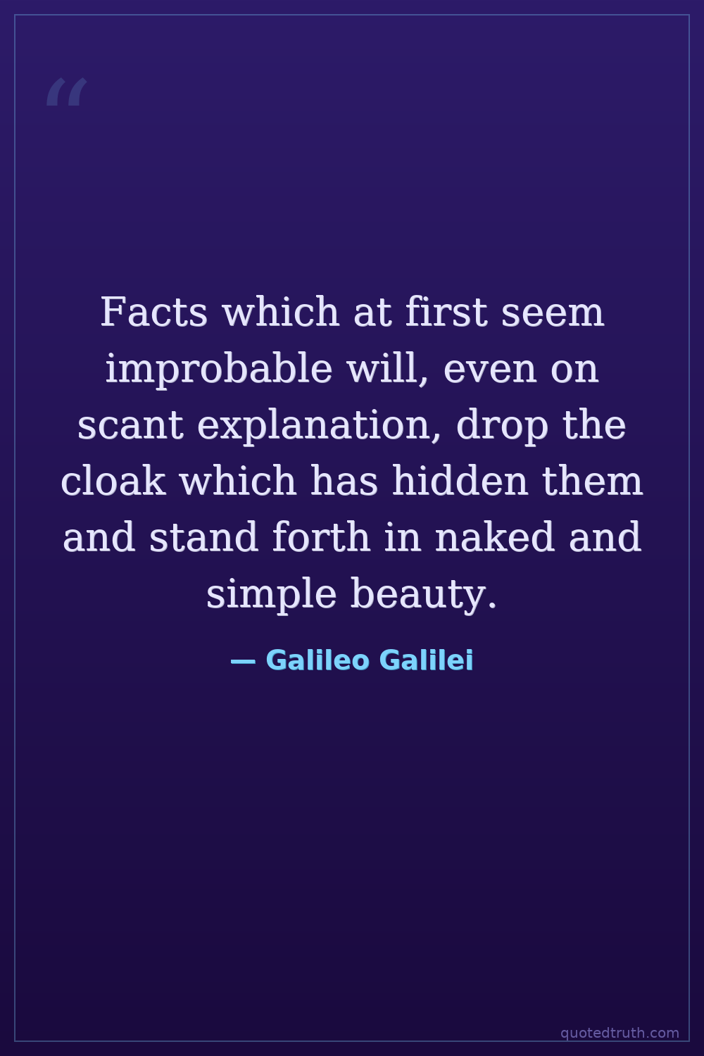 Facts which at first seem improbable will, even on scant explanation, drop the cloak which has hidden them and stand forth in naked and simple beauty.