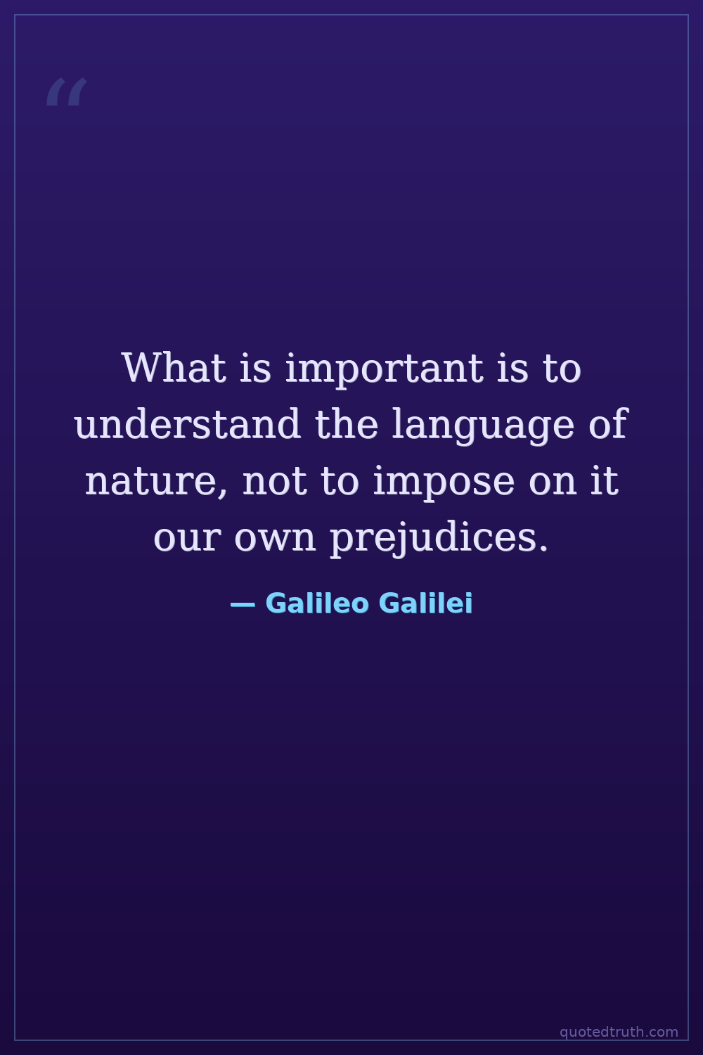 What is important is to understand the language of nature, not to impose on it our own prejudices.