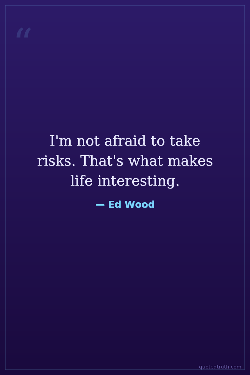 I'm not afraid to take risks. That's what makes life interesting.