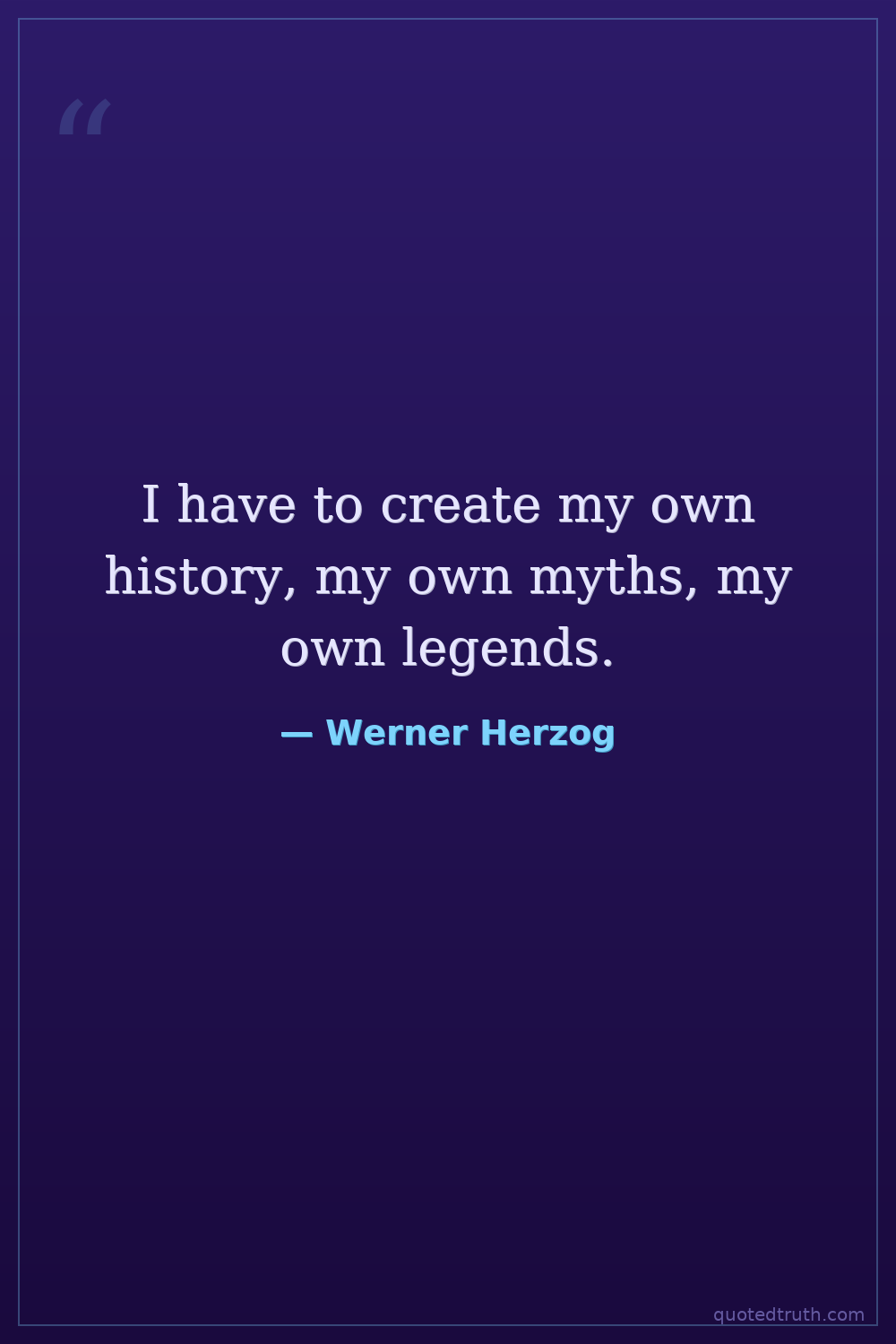 I have to create my own history, my own myths, my own legends.