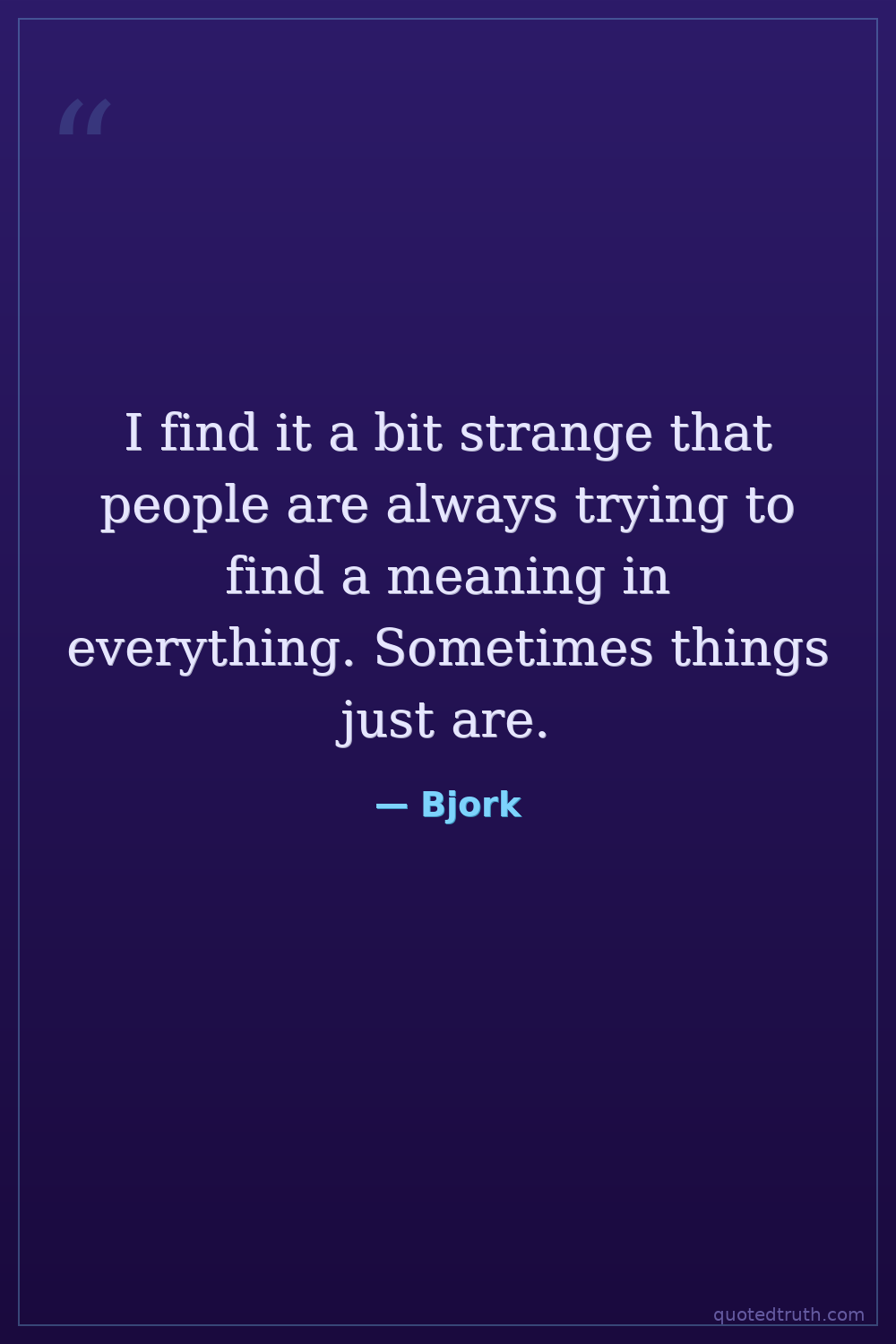 I find it a bit strange that people are always trying to find a meaning in everything. Sometimes things just are.