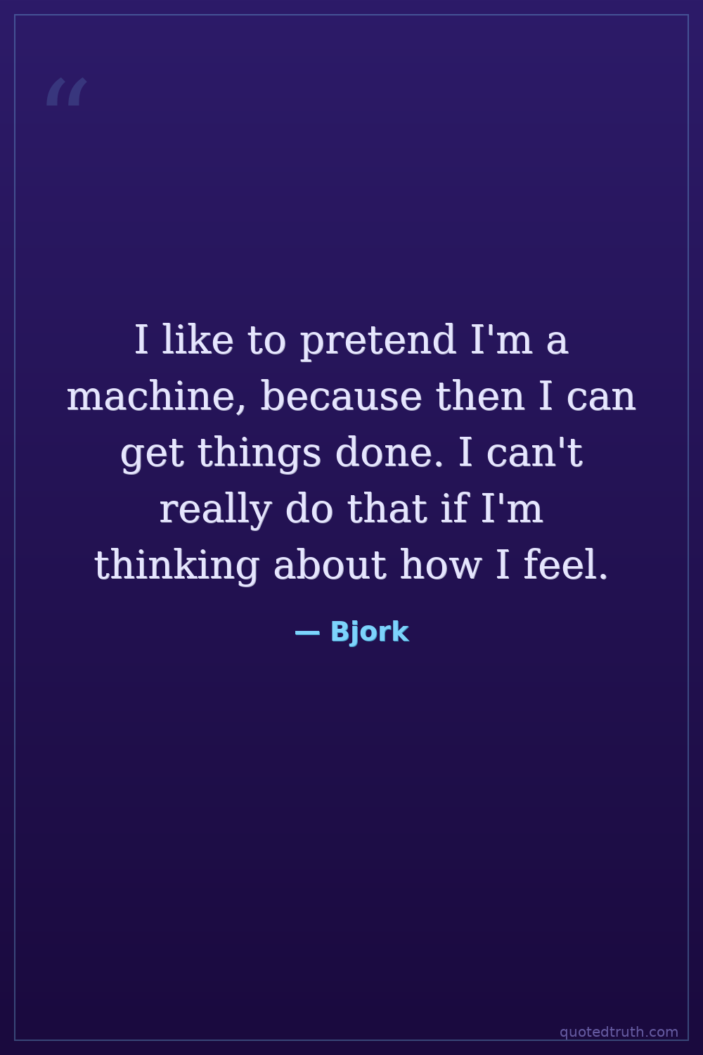 I like to pretend I'm a machine, because then I can get things done. I can't really do that if I'm thinking about how I feel.