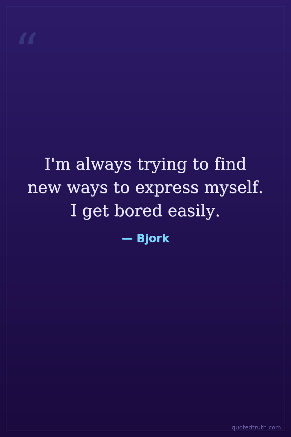 I'm always trying to find new ways to express myself. I get bored easily.