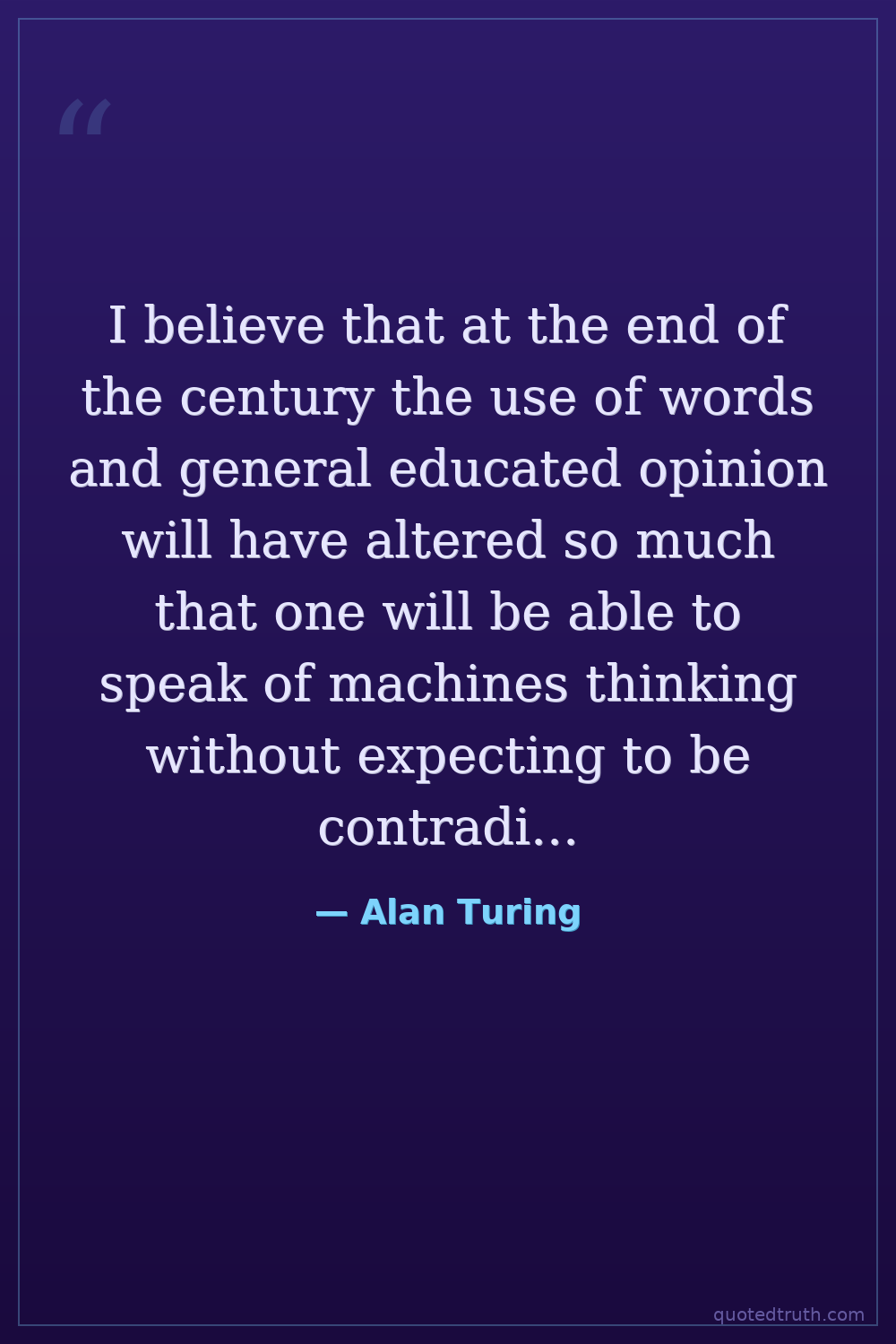 I believe that at the end of the century the use of words and general educated opinion will have altered so much that one will be able to speak of machines thinking without expecting to be contradicted.