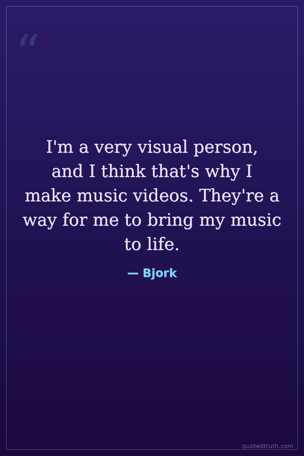 I'm a very visual person, and I think that's why I make music videos. They're a way for me to bring my music to life.
