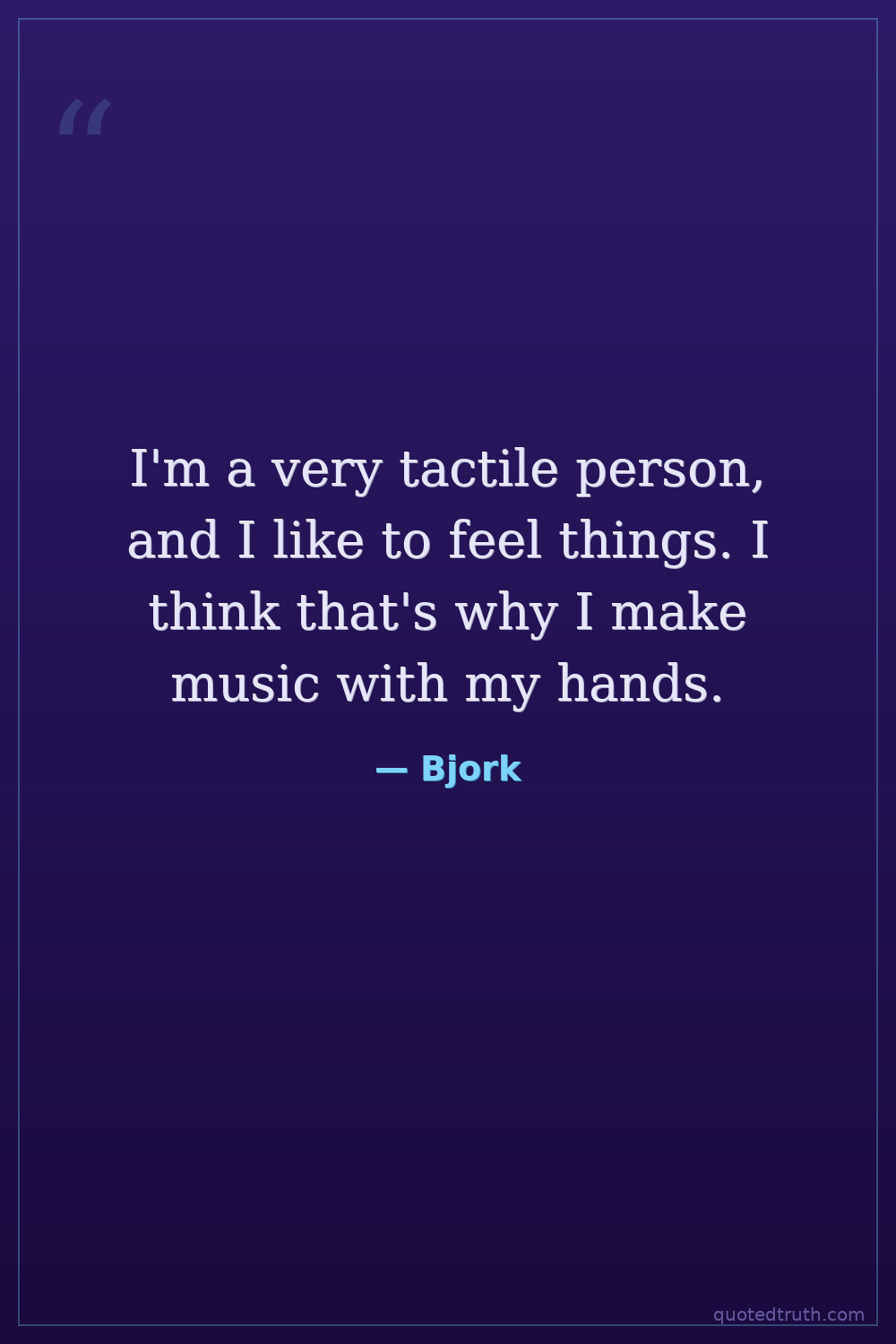 I'm a very tactile person, and I like to feel things. I think that's why I make music with my hands.