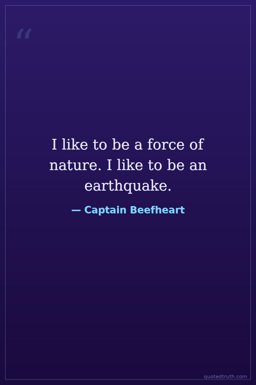 I like to be a force of nature. I like to be an earthquake.