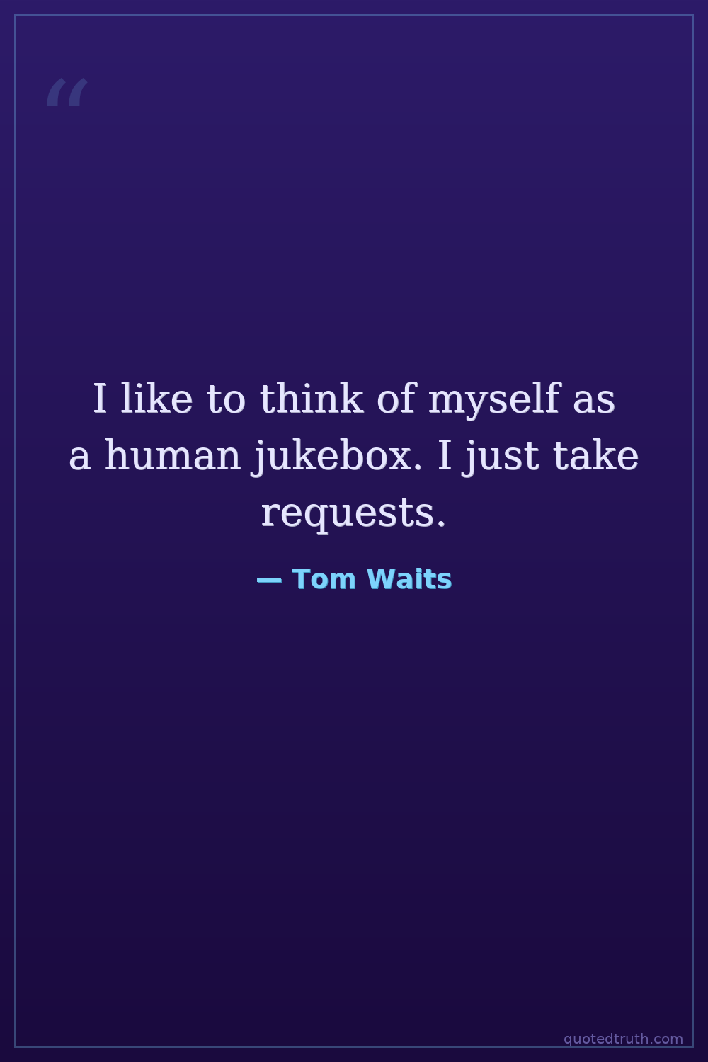 I like to think of myself as a human jukebox. I just take requests.