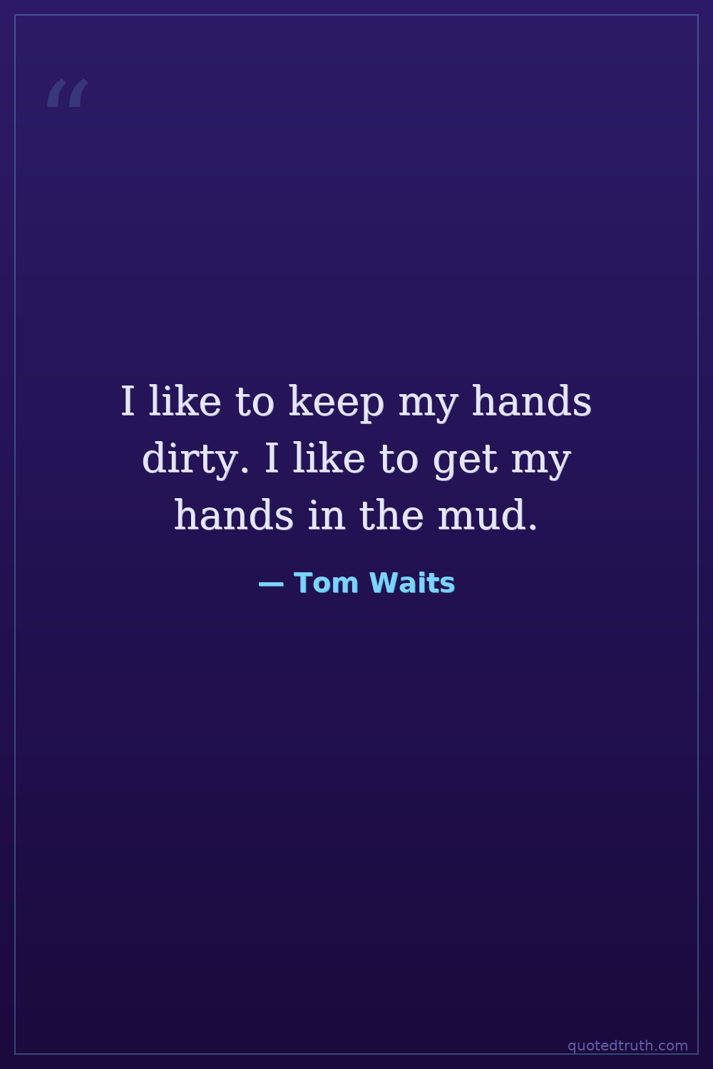 I like to keep my hands dirty. I like to get my hands in the mud.
