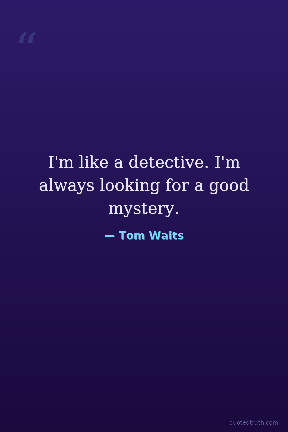 I'm like a detective. I'm always looking for a good mystery.
