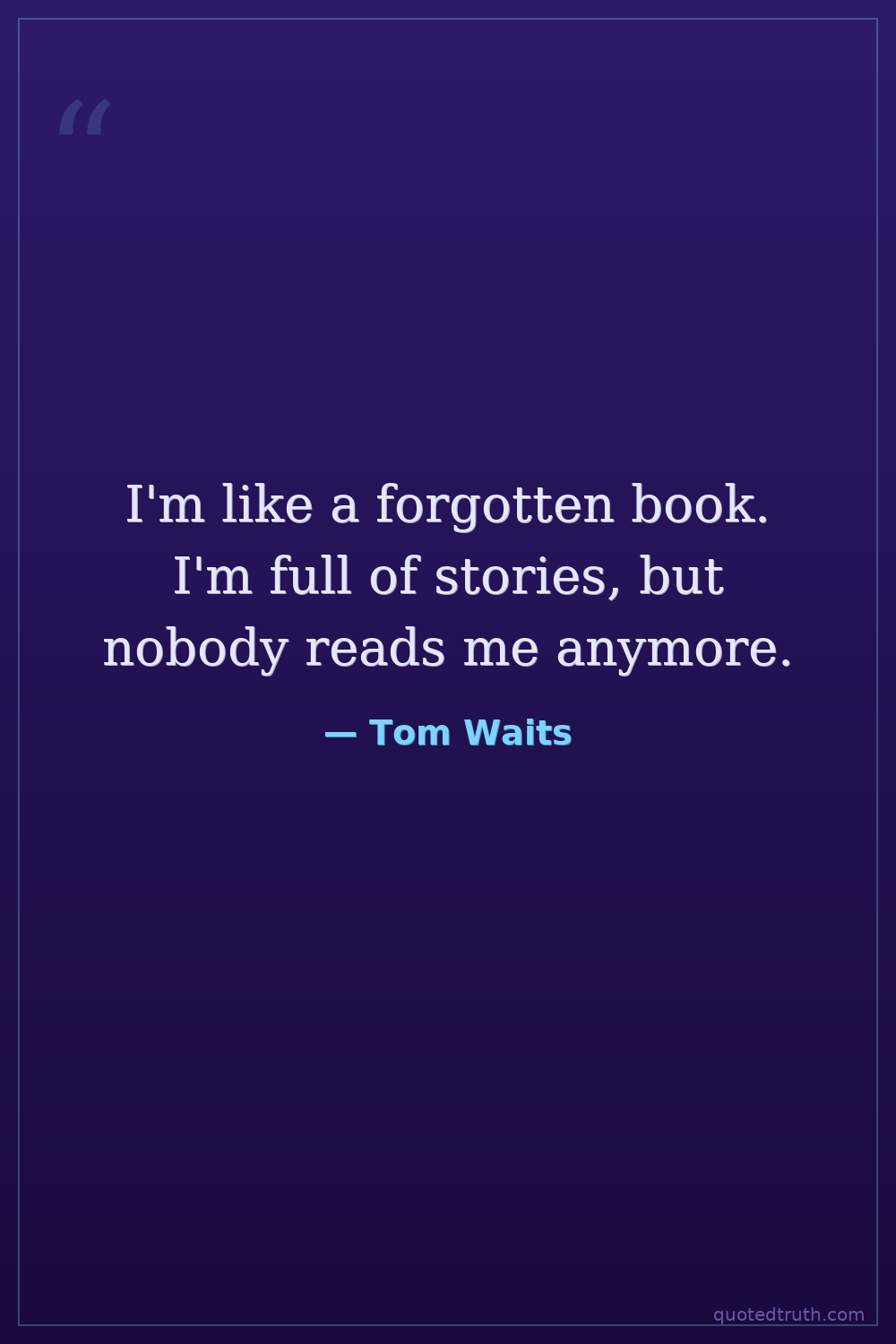 I'm like a forgotten book. I'm full of stories, but nobody reads me anymore.