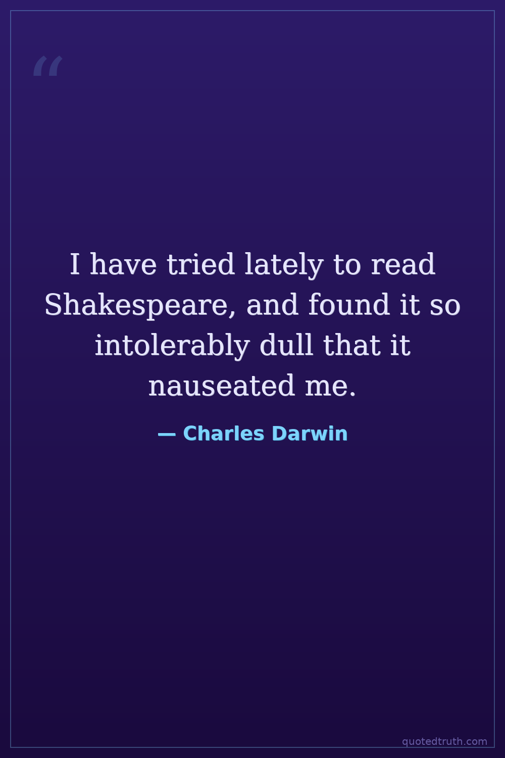 I have tried lately to read Shakespeare, and found it so intolerably dull that it nauseated me.