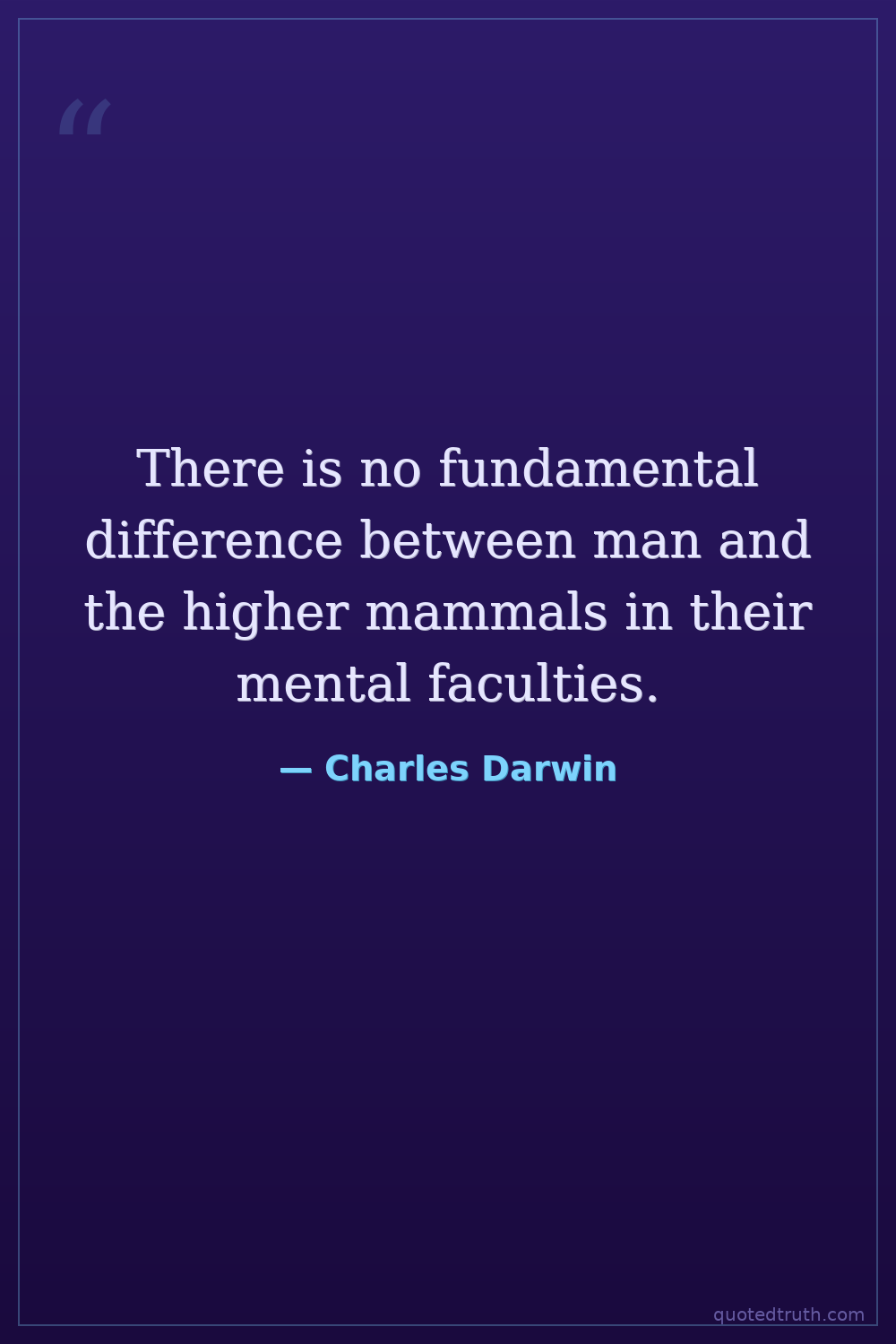 There is no fundamental difference between man and the higher mammals in their mental faculties.