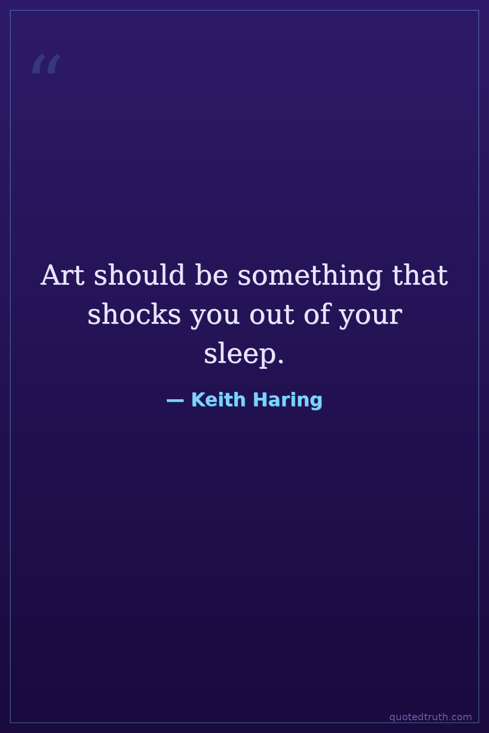 Art should be something that shocks you out of your sleep.