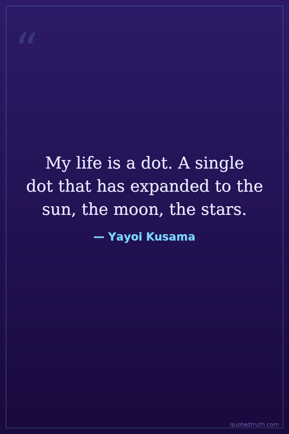 My life is a dot. A single dot that has expanded to the sun, the moon, the stars.