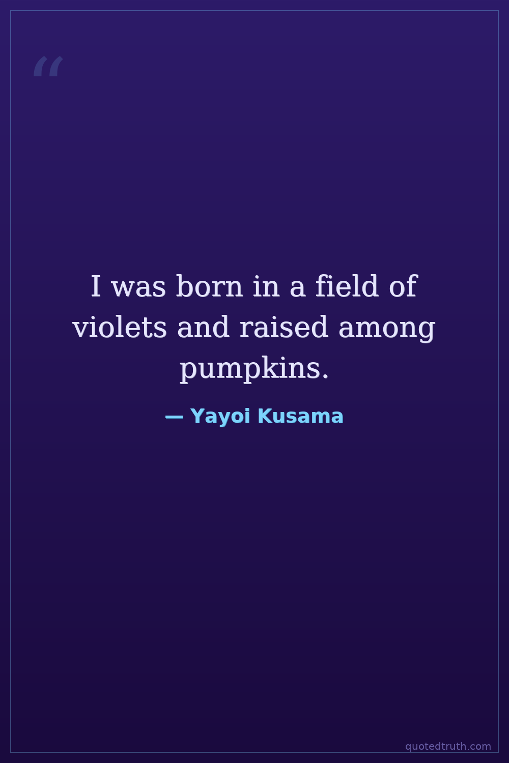 I was born in a field of violets and raised among pumpkins.